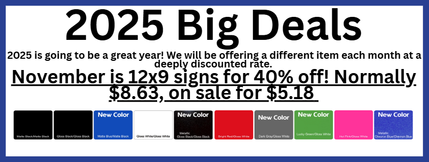 12" X 9" X .040" Aluminum sign with no holes and 3/4" rounded corners. Painted with baked on polyester paint. Holes available upon request. These are great for smaller sized signs that can be used inside or outside.