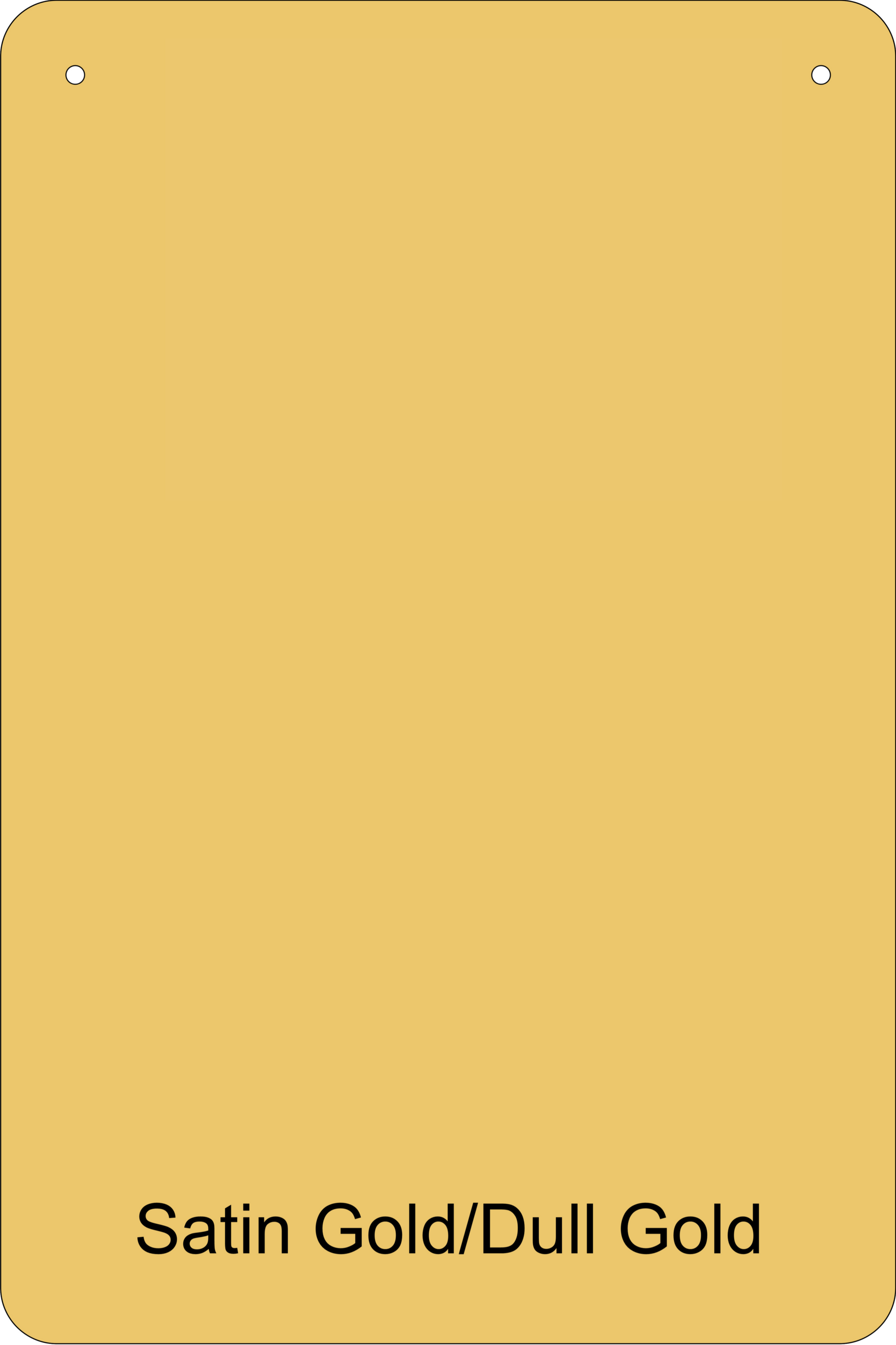 12" X 18" X .040" Aluminum sign with two 5/16" holes and 3/4" rounded corners. Anodized Satin Gold finish on one side and Dull Gold finish on the other.