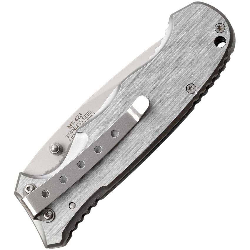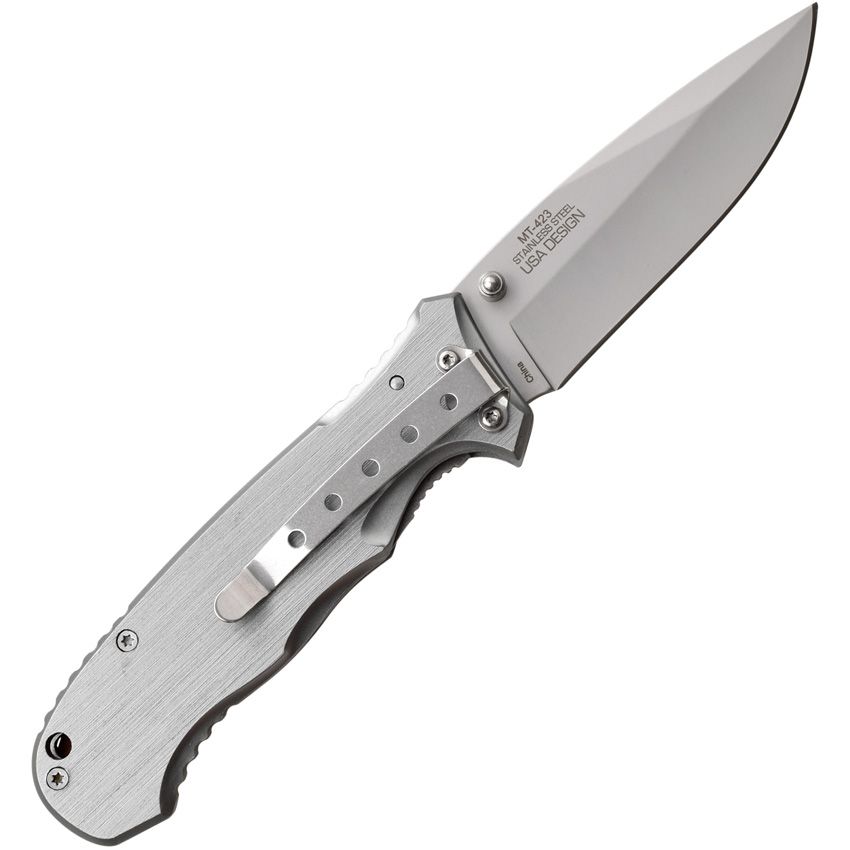 4.25" (10.8cm) closed. 3.25" (8.26cm) satin finish 3Cr13 stainless blade. Brushed stainless handle with Rosewood onlay. Thumb stud. Pocket clip. Boxed.